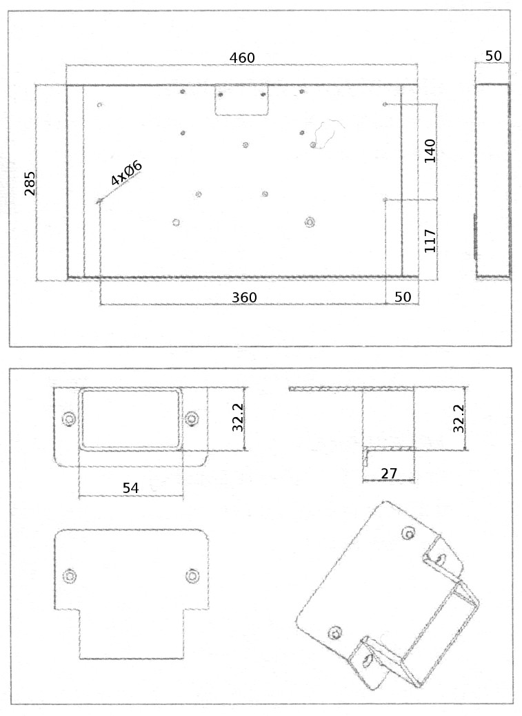 Afmeting W 46 x D 28 x H 5 cm. Gewicht 1,8 kg