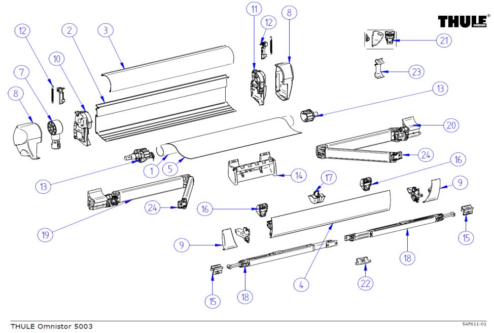 Onderdelen voor Fiamma Luifel F50 Pro 250–350/F55 Pro 400–550