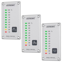 De VOTRONIC tank displays was ontworpen voor een exacte meting, en ze zijn geschikt voor alle tankmateriaal en tankinhoud. De eenheden verschillen in de rangschikking van de drie-kleurendisplay lichtdiodes op de afstand uiteinden en de opdruk op het voorpaneel symbolen.