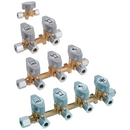 Afsluitkranen blok 1 tot 4 kranen, ingang Ø 8 of Ø 10 mm